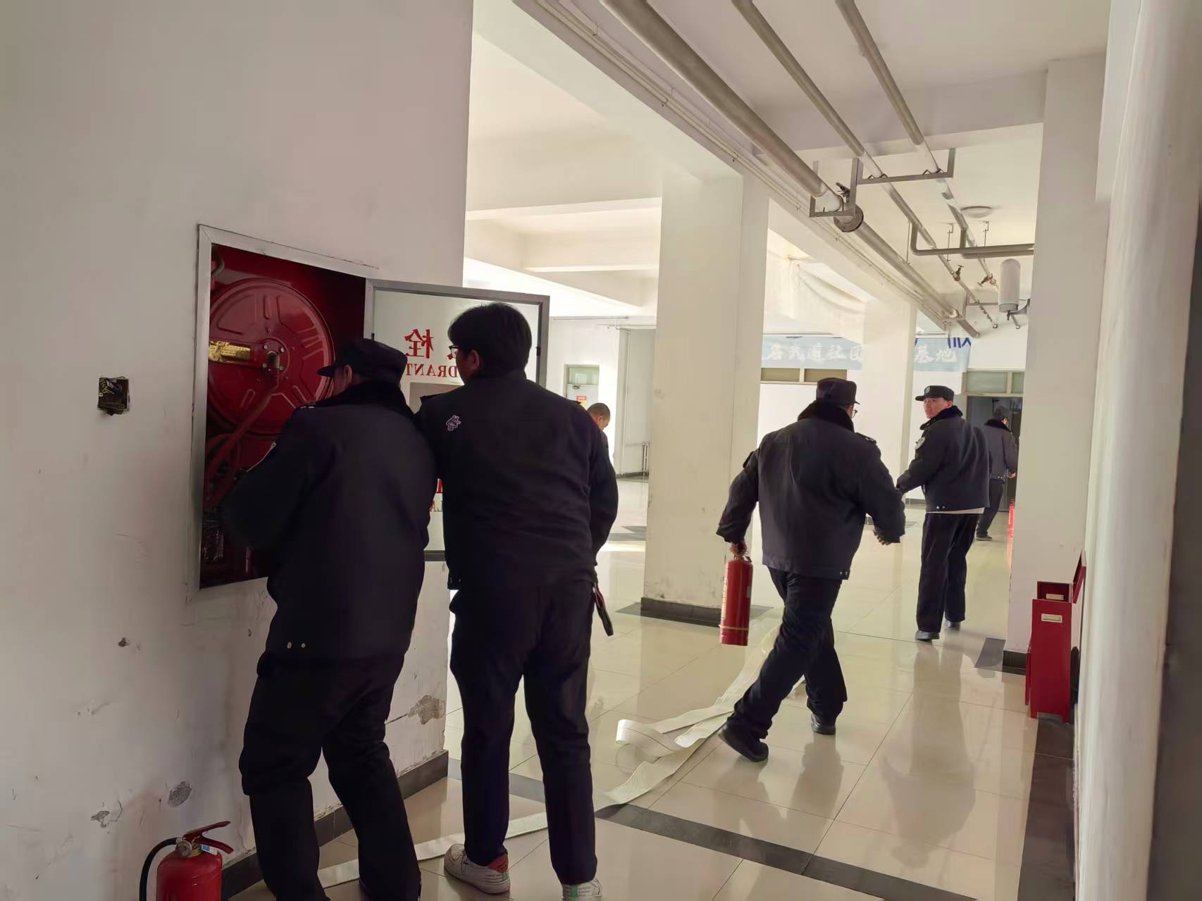 此次培训坚持理论与实操相结合,贴合校园消防实际,工作人员用简洁通俗的语言,讲解了火灾常见成因、初期处置流程,重点拆解灭火器“提、拔、握、压”四步骤及消防水带连接、铺设的关键技巧,并现场示范、手把手指导。参训人员分组实操、协同配合,规范完成灭火器喷射灭火、水带展开等全流程操作,工作人员逐一纠正不规范动作,确保人人过关、个个熟练。