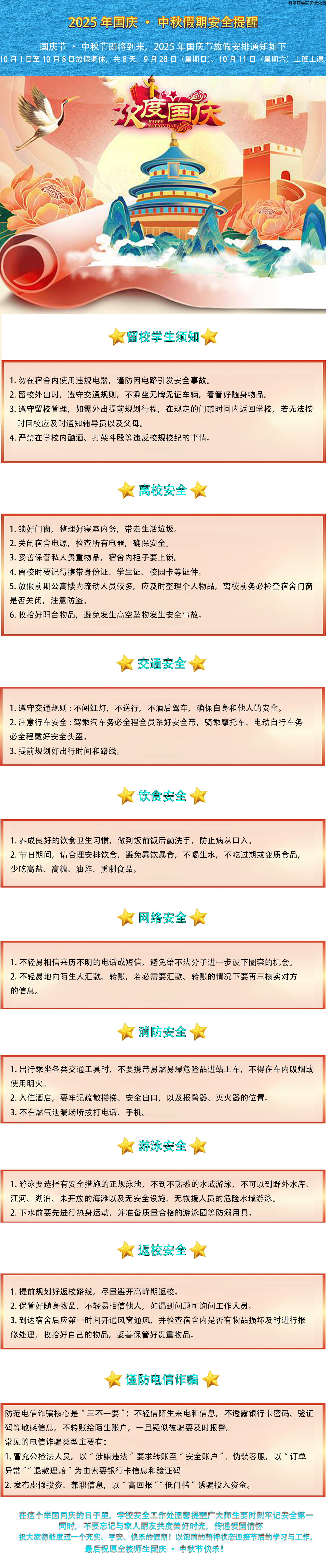 2025年国庆、中秋假期安全提醒